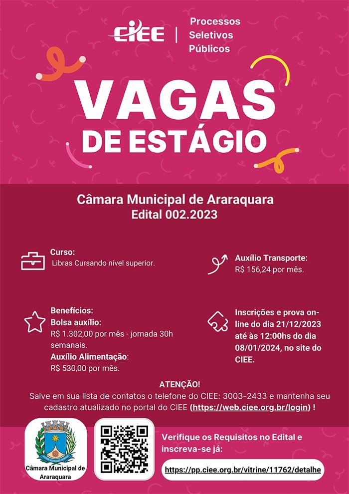 Oportunidade de Estágio na Câmara Municipal de Araraquara