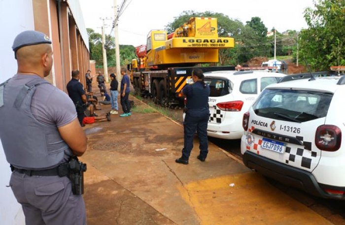 A primeira abordagem foi realizada pela GCM e pela Polícia Militar, com o objetivo de verificar possíveis situações criminais, identificar os indivíduos presentes e assegurar a integridade de todos os envolvidos, além de permitir a continuidade segura dos trabalhos no local.