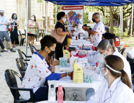 A testagem para HIV, sífilis e Covid-19 foi realizada em frente ao Paço Municipal; solenidade reuniu profissionais da saúde e de entidades que lutam pela causa