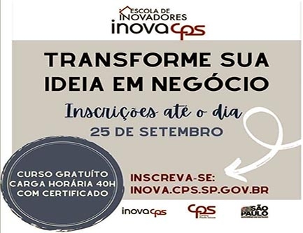 Curso gratuito ensina pessoas com espírito empreendedor a transformar ideias inovadoras em modelos de negócios; inscrições abertas até dia 25 de setembro