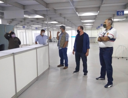 Prefeito Edinho e secretários municipais receberam as doações no Hospital da Solidariedade, no domingo (10)