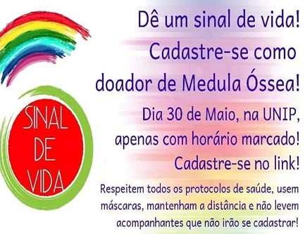 Candidatos podem se cadastrar de forma online e marcar hora para a doação no dia 30 de maio, na sede da Unip Araraquara