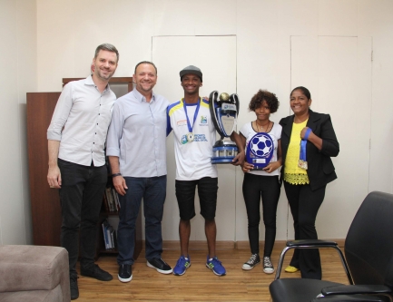 Araraquarense Juninho Aguiar visitou o prefeito Edinho na terça-feira (25), acompanhado da família e do vereador Rafael de Angeli (PSDB)