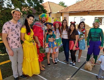 Integrantes do grupo se fantasiam para levar rosas, alegria e distribuir bitocas para mães que estão em diversos asilos
