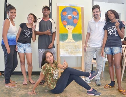 Jovens elaboraram frases para a campanha e uma peça em graffiti com imagem mista de uma mulher e uma árvore com seus dons e frutos