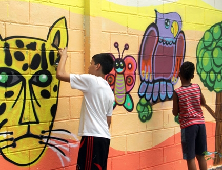 Alunos e educadores mudaram a frente do CE Fundecitrus com a pintura de grafites