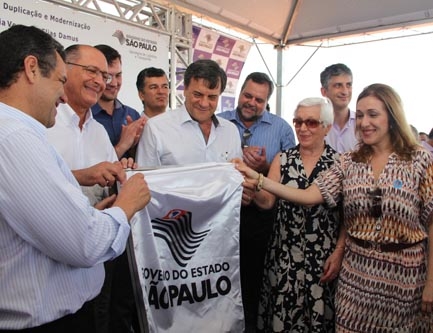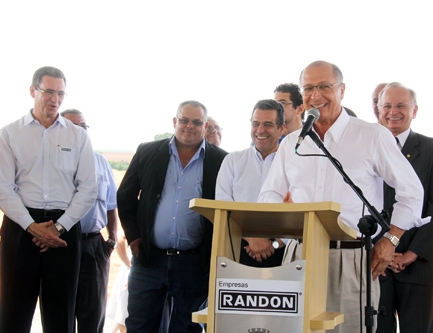 Geraldo Alckmin, Marcelo Barbieri, deputados e diretores da empresa lançaram pedra fundamental nesta sexta-feira