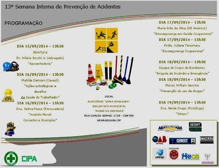 Durante toda a semana, várias palestras irão debater na Biblioteca Mário de Andrade temas sobre segurança e acidentes no trabalho