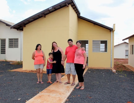 A operadora de caixa Luciana Lúcia, com o filho Daniel, vistoria nova casa com apoio de parentes
