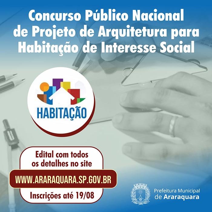 A Prefeitura de Araraquara, por meio da Coordenadoria Executiva de Habitação e da Gerência de Projetos Habitacionais, abre nesta terça-feira (5) as inscrições para o "Concurso Público Nacional de Projeto de Arquitetura para Habitação de Interesse Social", que visa selecionar projetos considerando critérios pré-estabelecidos e questões de tecnologia, conforto, desempenho e sustentabilidade.