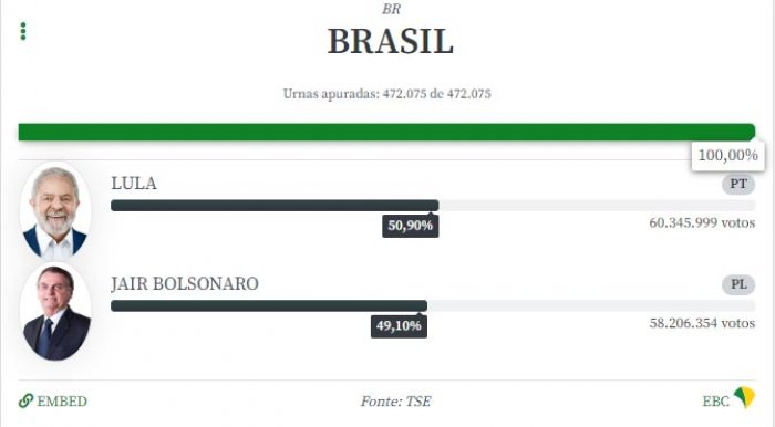 Fonte: https://agenciabrasil.ebc.com.br/politica/noticia/2022-10/lula-77-anos-e-eleito-para-o-3o-mandato-de-presidente-da-republica