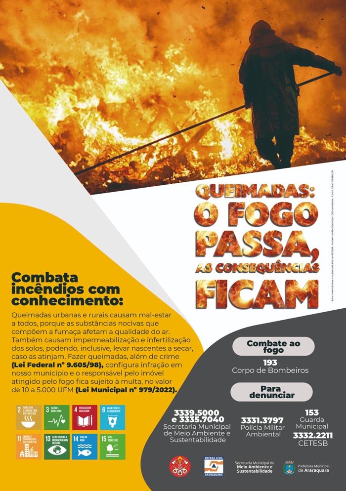 O secretário Municipal de Meio Ambiente e Sustentabilidade, José Carlos Porsani, explica que a campanha visa esclarecer a população sobre os malefícios causados pelas queimadas, além de reforçar o trabalho de fiscalização feito pela Prefeitura e a importância de a população colaborar com denúncias. “As queimadas são um dos piores impactos ambientais que podem ocorrer, além de destruir a flora, matar a fauna, deixar o solo infértil e exposto, sujeito a erosões e assoreamentos, causa a poluição do ar levando a vários problemas de saúde pública”.