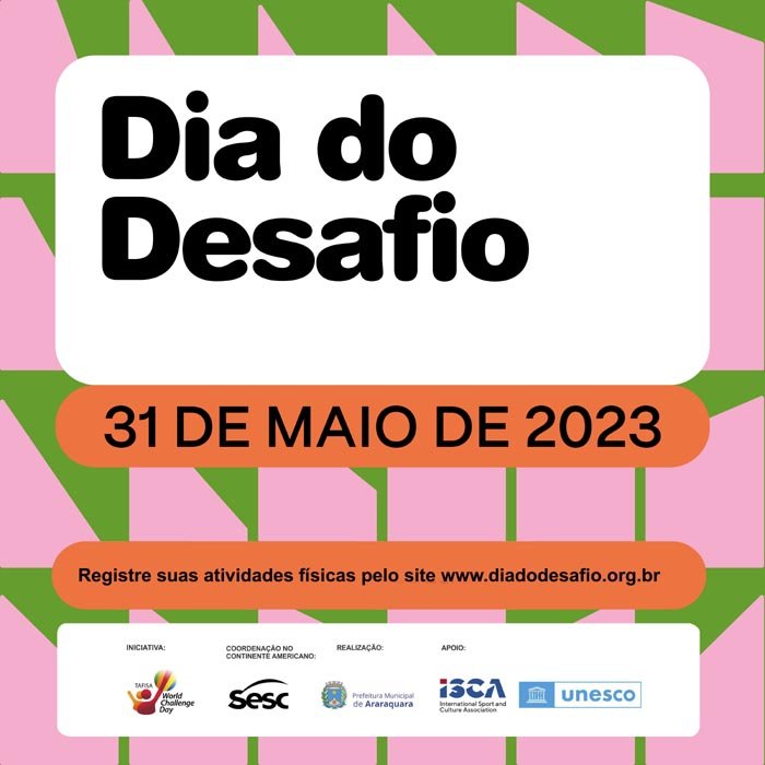 Araraquara participa nesta quarta-feira, 31 de maio, da 29ª edição do Dia do Desafio, que é a maior campanha mundial de incentivo à prática de atividades físicas. A ação, que é promovida pelo Sesc e conta com o apoio da Prefeitura, tem o objetivo de mobilizar o maior número de pessoas a pararem suas rotinas e, por pelo menos 15 minutos, realizarem uma atividade física. O tema deste ano é “Muito mais que um dia!”.