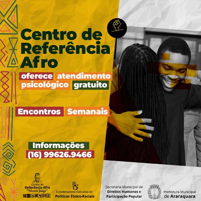 A Prefeitura de Araraquara, através do Centro de Referência Afro "Mestre Jorge", passa a oferecer mais uma etapa do Ciclo da Terapia de Resultados Breves, em uma parceria que conta com o apoio voluntário de psicólogos profissionais. O atendimento será gratuito, individual e personalizado. Serão realizados na modalidade remoto ou presencial, estimulando os interessados a se conectarem com suas raízes enquanto investem em seu crescimento pessoal.