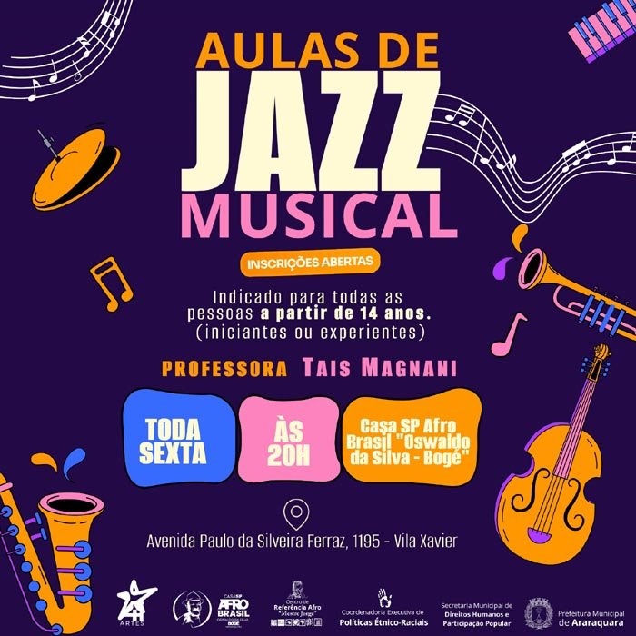 A Casa SP Afro Brasil "Oswaldo da Silva Bogé", que fica na Av. Paulo da Silveira Ferraz, 1195, Vila Xavier, abriu as inscrições para a oficina gratuita de jazz musical, que é indicada para todas as pessoas a partir de 14 anos de idade.