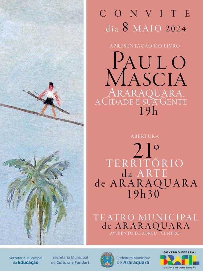 A obra “Paulo Mascia - Araraquara, a cidade e sua gente” reúne a visão que o artista Paulo Mascia (1919-1991) tinha sobre Araraquara, e é explorada por meio de telas com apresentação da cidade e de crônicas que foram publicadas no jornal “O Imparcial”, além de depoimentos e biografia.