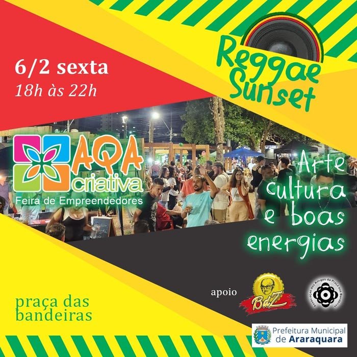 Tem Feira Aqa Criativa nesta sexta-feira, 6 de fevereiro, na Praça das Bandeiras, das 18h às 22h, com o apoio da Secretaria Municipal de Desenvolvimento Econômico, por meio da Subsecretaria do Trabalho e da Economia Criativa e Solidária.