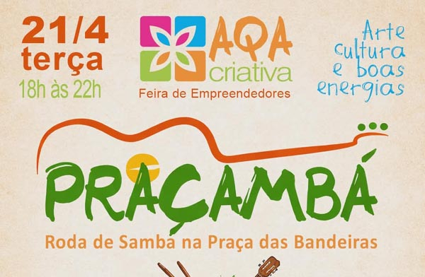 O feriado de Tiradentes, na próxima terça-feira (21), contará com muita animação na Praça das Bandeiras, com a realização da Feira Aqa Criativa que apresenta o projeto Praçambá com o grupo SambaZinho.