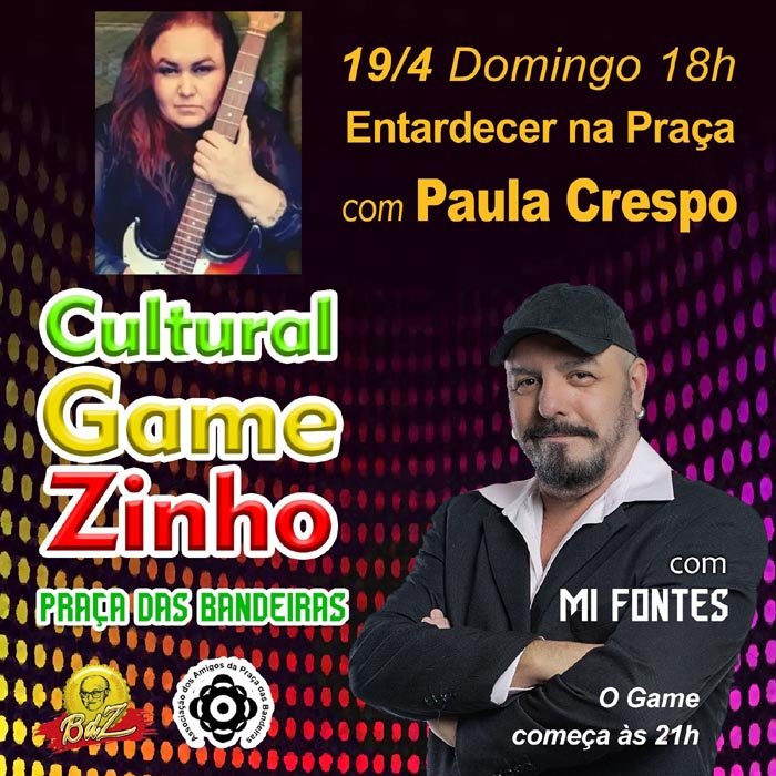 A Praça das Bandeiras apresenta mais um show musical gratuito na programação do projeto “Ponto de Cultura”: será neste domingo (19), das 18h às 20h, com a cantora Paula Crespo.