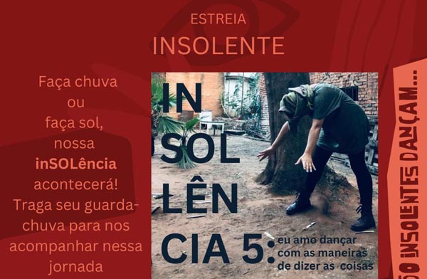 “Insolência 5: eu amo dançar com as maneiras de dizer as coisas” é uma co-produção entre Paraguai, Brasil, França e Turquia e tem no elenco as artistas da Dança: Gilsamara Moura e Alejandra Díaz (P...