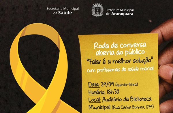 'Setembro Amarelo' reunirá população e profissionais da saúde em roda de conversa no dia 29 de setembro