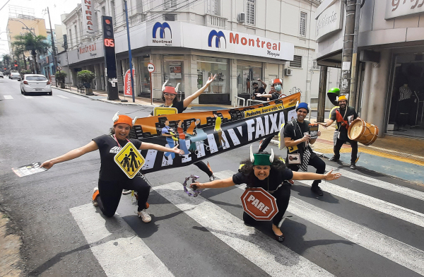 "Anjos do Trânsito" alertam para a importância da faixa de pedestre