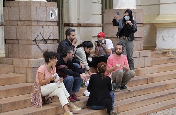 Performance foi apresentada na tarde desta segunda-feira em frente ao Palacete das Rosas; programação é gratuita
