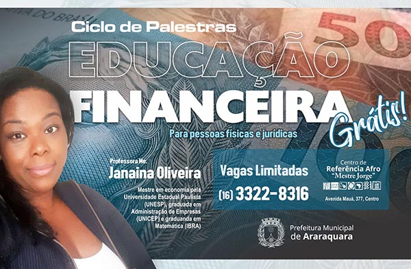 Encontro no Centro Afro faz parte do Ciclo de Palestras "Educação financeira", ministrado pela Profª Me. Janaina Oliveira