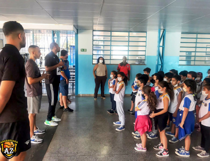 Atletas do AZ Basquete interagem com crianças de Gavião Peixoto