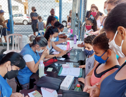 Entre as crianças de 5 a 11 anos, 77% receberam pelo menos a primeira dose do imunizante na cidade, 66% no estado de São Paulo e 21% em todo o Brasil