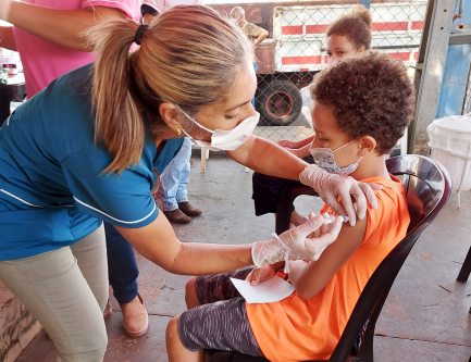 Crianças são vacinadas nas unidades de saúde do Iguatemi, Melhado, Adalberto Roxo, Jardim América e Sesa; 75% do público infantil já tem 1ª dose