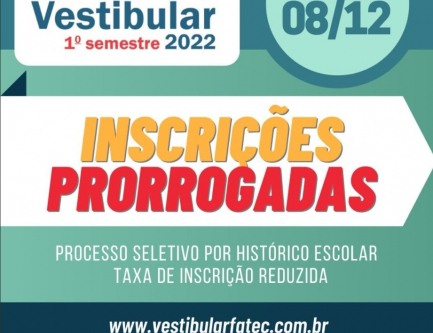 Fatec prorroga prazo de inscrições para o Vestibular