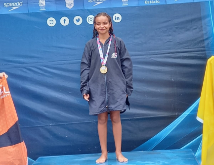 Ex-aluna das Escolinhas de Esportes da Prefeitura, Marcela Martinez, de 10 anos, foi destaque no Torneio Sudeste de Natação