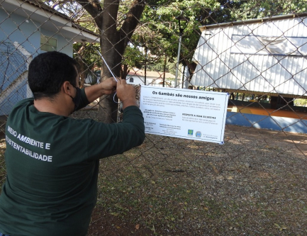 Secretaria de Meio Ambiente e Sustentabilidade instala placas informativas sobre gambás em praças