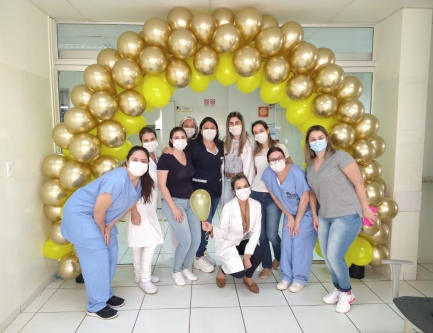 Bexigas douradas e exposição de fotos marcam o mês simbólico na promoção do aleitamento materno