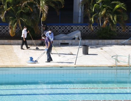 Equipes de limpeza atuaram no Complexo Aquático Governador Lucas Nogueira Garcez, na Fonte Luminosa