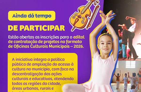 Prazo de inscrição para projetos de Oficinas Culturais Municipais se encerra nesta quarta-feira (4)