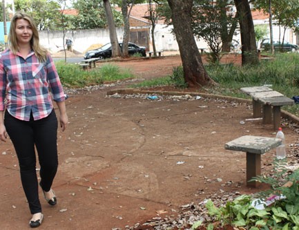 Gabriela Palombo cobra manutenção em praça no Melhado