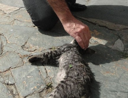 Gato foi encontrado morto ontem por moradores com perfurações no corpo