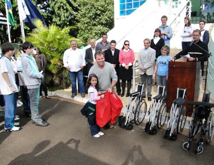 720 garrafas cheias de lacres de latas de alumínio se transformam em seis cadeiras de rodas