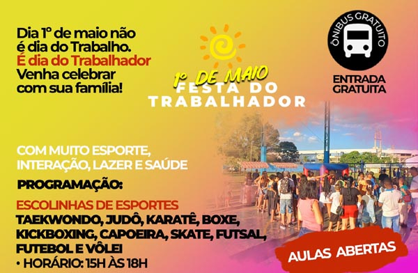 Tradicional festa de 1º de maio será realizada na Praça Scalamandré Sobrinho com shows, esporte e cultura; ônibus será gratuito o dia todo
