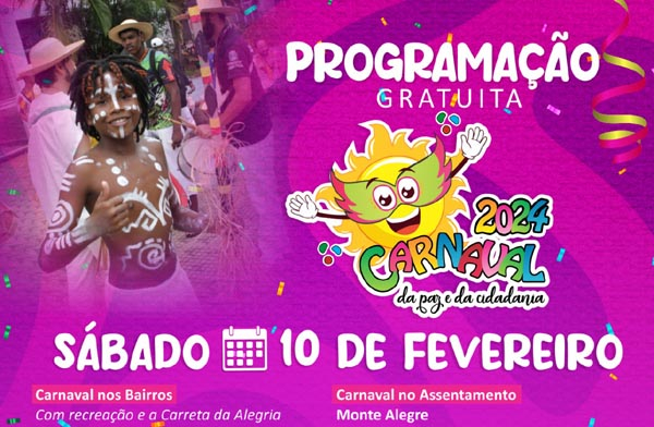 Carnaval da Paz e Cidadania 2024 começa neste sábado (10)