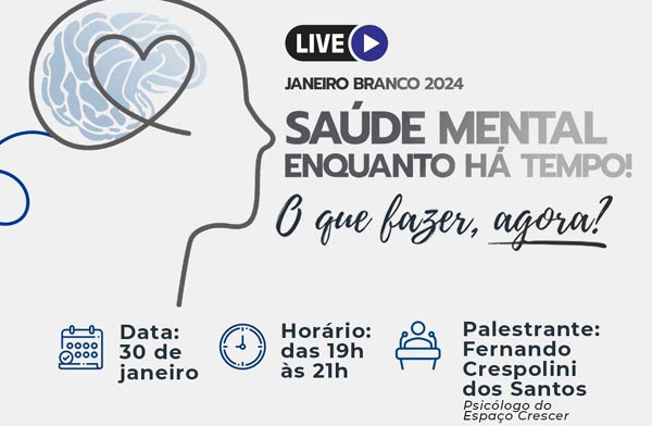 Com inscrições gratuitas, atividade que integra a campanha "Janeiro Branco" será realizada no dia 30 de janeiro, às 19h