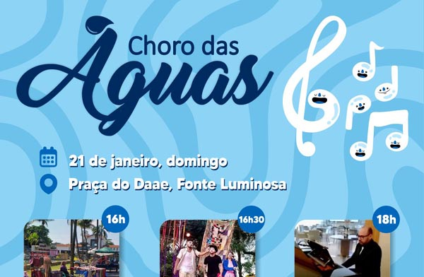 Programação gratuita na Praça do Daae – Fonte Luminosa, em Araraquara, é neste domingo (21), a partir das 16h