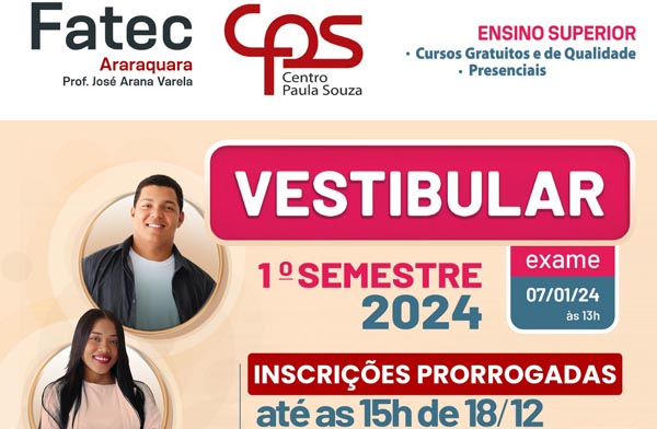Fatec prorroga prazo de inscrições para o Vestibular 2024