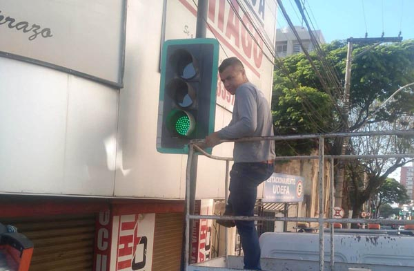 Secretaria de Trânsito e Transportes realiza manutenção em semáforos no Centro