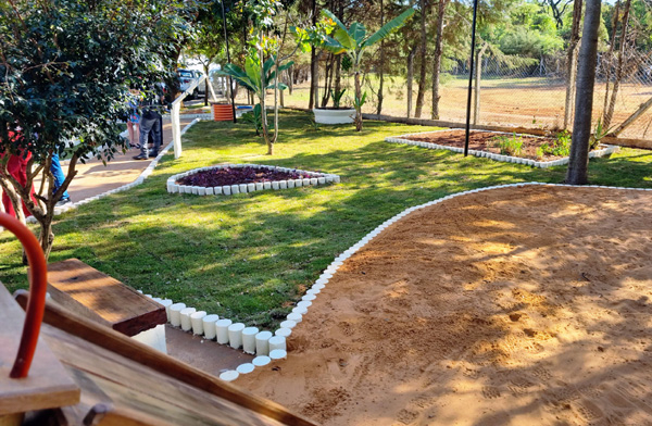 Feito com materiais reaproveitados, espaço foi construído ao lado do Ponto de Entrega de Volumosos do bairro