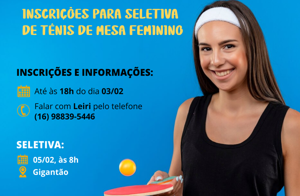 Seletiva do tênis de mesa feminino será no domingo, dia 5
